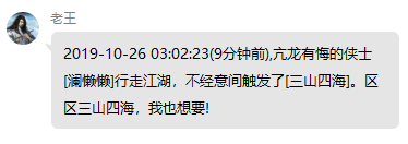 老王是个QQ机器人,一开始就是群里逗比用的,老王这个名字便是恶搞隔壁老王,后来索性挂靠恶人谷老王了。