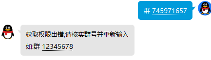 - 私聊:(1)管理员账号向机器人好友发送私聊信息:"群 [群号]" (2)按提示回复。