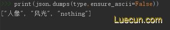 json.dumps(type,ensure_ascii=False)